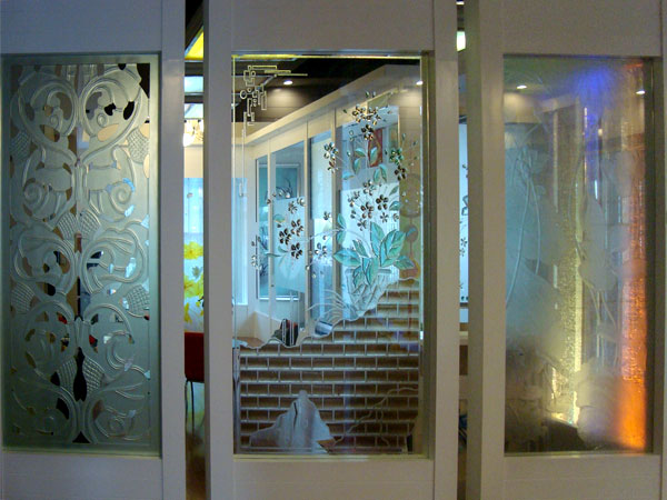 工艺玻璃。分为。其中人工雕刻利用娴熟刀法的深浅的转折配合,更能表现出玻璃的质感,使所绘图案予人呼之欲出的感受。雕刻玻璃是家居装修中很有品味的一种装饰玻璃,所绘图案一般都是具有个性“创意”,反映出居室主人的情趣所在和追求。凡是经过二次艺术加工的玻璃都可以成为艺术玻璃,从几十元至上万元不等,最初级的应该就算磨砂玻璃了,就是将图案用喷沙枪磨在白玻上,档次较低。最大的缺点是磨砂部分很容易脏,而且无法清洗,很难看,价格便宜。基本淘汰。